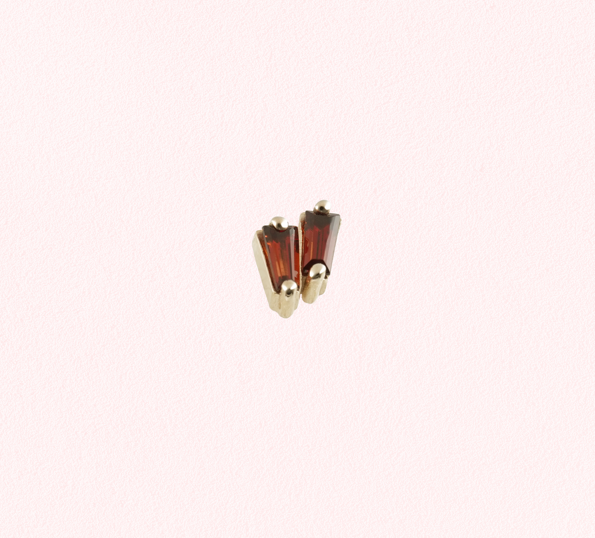Darby is a showstopper that brings some serious sparkle to the table. This stunner features a step-cut tapered double baguette of rich mozambique garnet, cradled in warm 14k yellow gold. The geometric precision of the step cut catches light beautifully, while the deep crimson tones of the garnet add drama and sophistication. A gem that's equal parts elegant and fun.